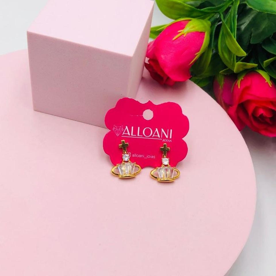 Brinco coração com coroa...