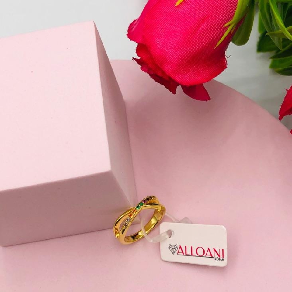 Anel Coração Cravejado Colorido N 16...