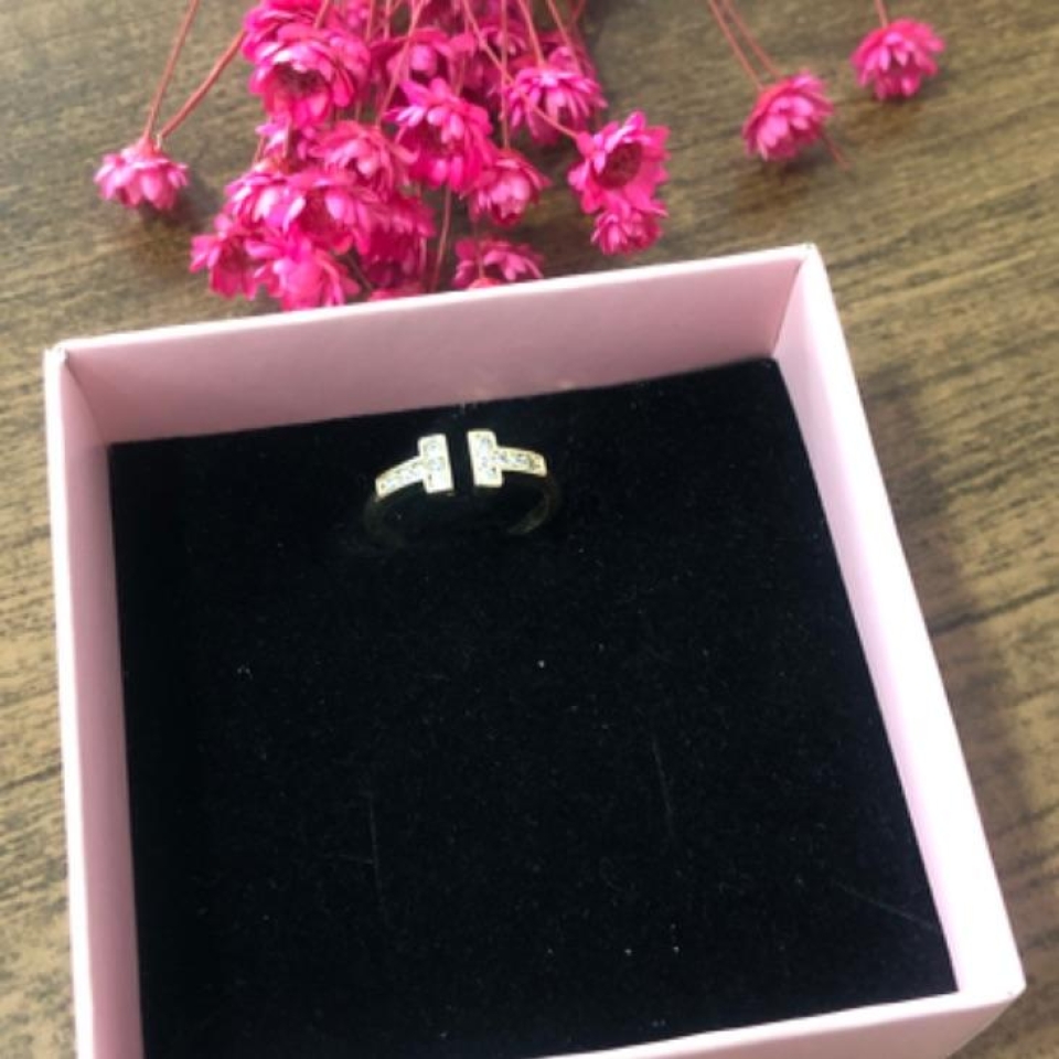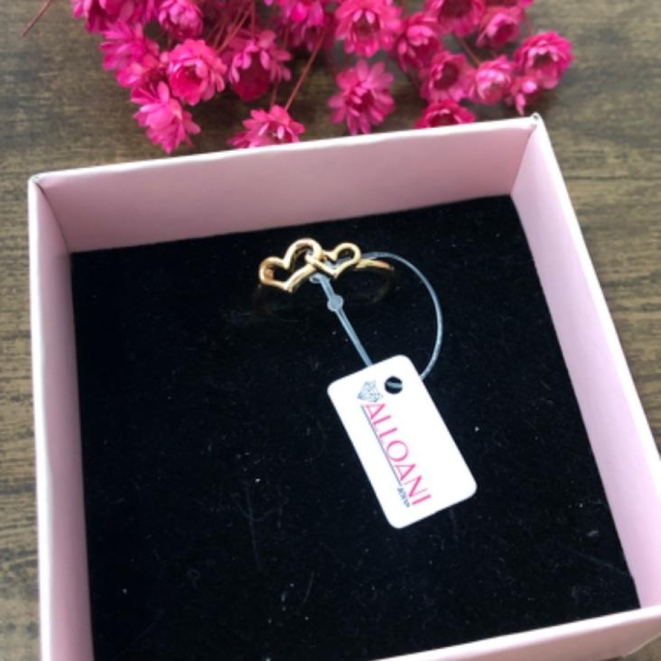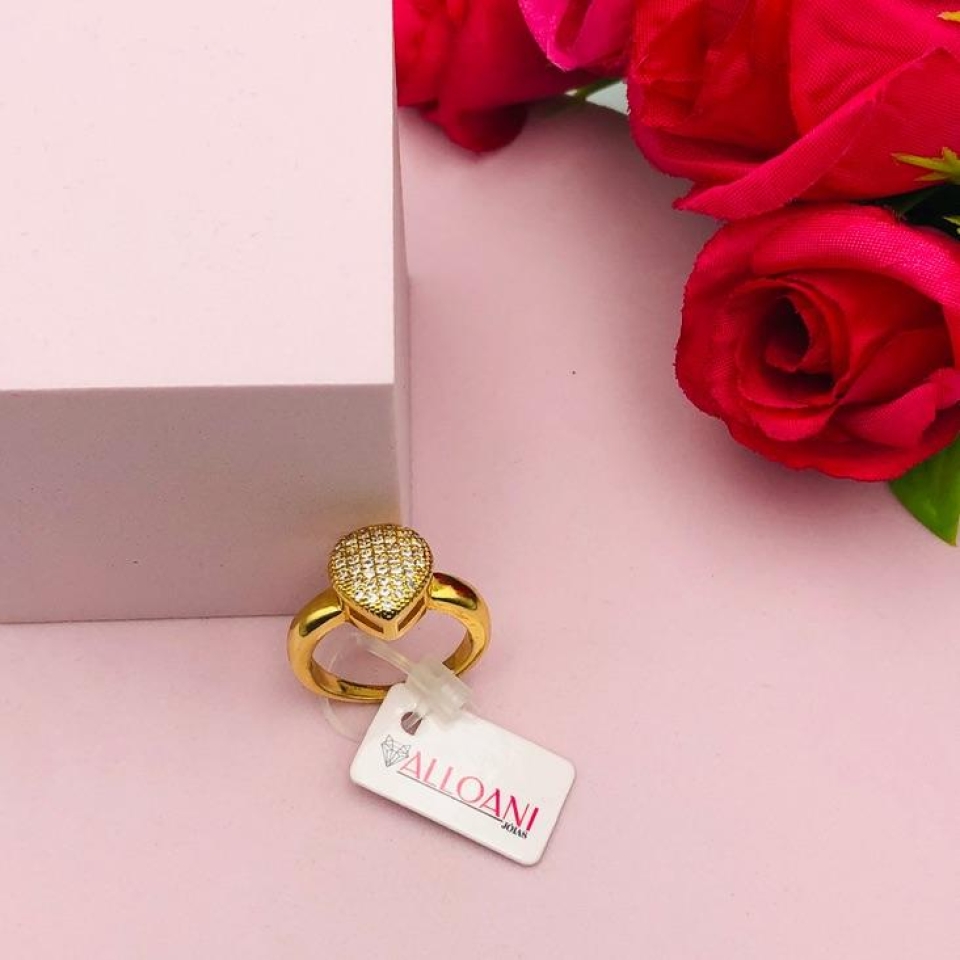 Anel Cravejado e Com Coração Rosa...